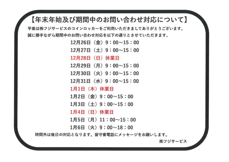 年末年始のお問合せ対応